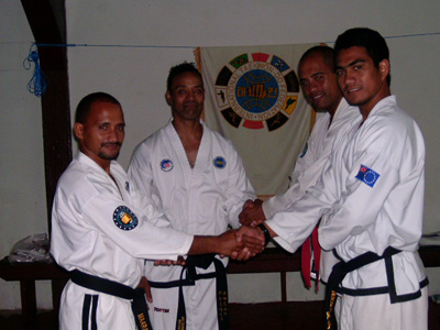 Black Belt Grading for Cook IslandsMaster Paul McPhail conducted a black belt grading in Rarotonga on Saturday 21st March 2009. Mr Upoko Poko (1st gup) was promoted to 1st dan, and Mr Ben Maaka was promoted to 2nd dan with an A Pass. The two applicants were tested using the ITFNZ syllabus which involved a written examination, oral test, fitness test, personal training with Master McPhail, plus all the usual criteria such as patterns, step sparring, self defence, destructions and free sparring. Master McPhail also conducted a Gup Grading and was very happy with the standard of all the members of the Cook Islands Club. Congratulations to Mr Maara John and his committee for the wonderful job they are doing in the Cook Islands. Special mention and thanks also to ITFNZ members Mr and Mrs Iotua and Mr Greg Skinner, for their support.